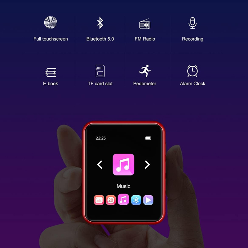 • ✅【Multifunctional MP3 player】: M5The music player has an independent volume key and power switch, which is convenient for exercise. This 32GB Bluetooth walkman has music, FM radio, pedometer, recording, video, e-book, alarm clock, equalizer, A-B repeat, text synchronization, and other functions. Suitable for children, the elderly, husbands, and wives! Great gift,